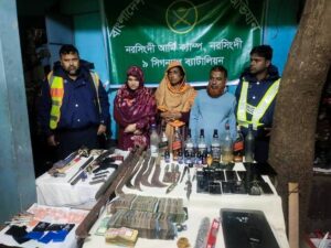 নরসিংদীর শিবপুরে বিপুল পরিমাণ অস্ত্র, মাদক ও নগদ অর্থ সহ গ্রেফতার সাত