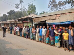 সুন্দরগঞ্জে ব্যবসায়ীর টাকা ছিনতাই এর আসামি কে গ্রেফতারের দাবিতে মানববন্ধন
