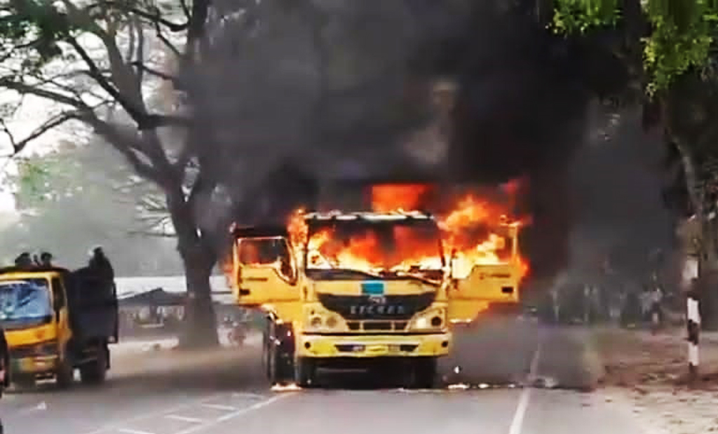 খবর পেয়ে আইনশৃঙ্খলা রক্ষাকারী বাহিনীর সদস্যরা ঘটনাস্থলে পৌঁছে পরিস্থিতি নিয়ন্ত্রণে আনেন এবং সড়কে যান চলাচল স্বাভাবিক করেন।