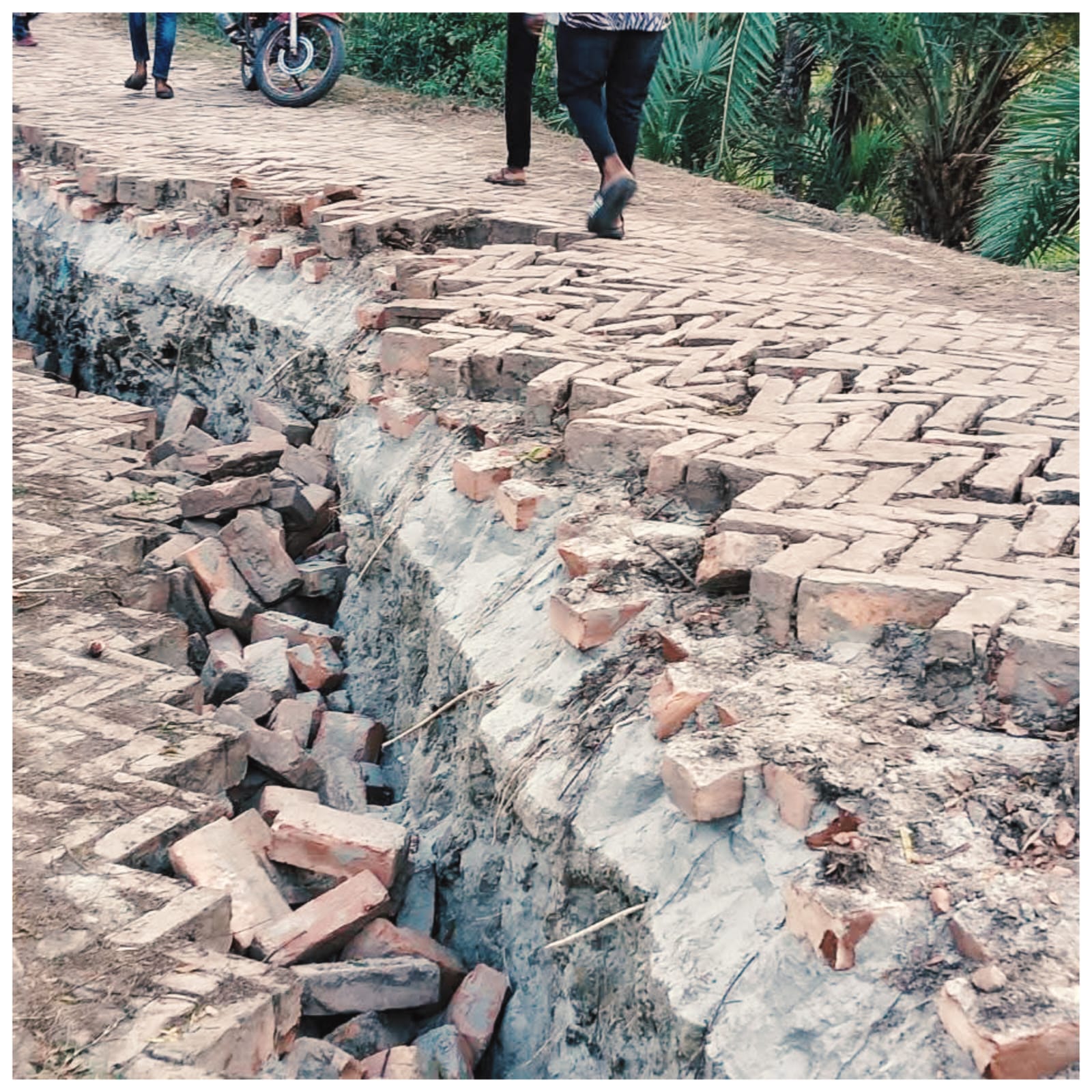 সরেজমিনে দেখা যায়, সড়কের বিভিন্ন স্থানে ইট উঠে গেছে, বড় ধরনের ফাটল এবং কোথাও কোথাও বড় বড় গর্ত সৃষ্টি হয়েছে।
