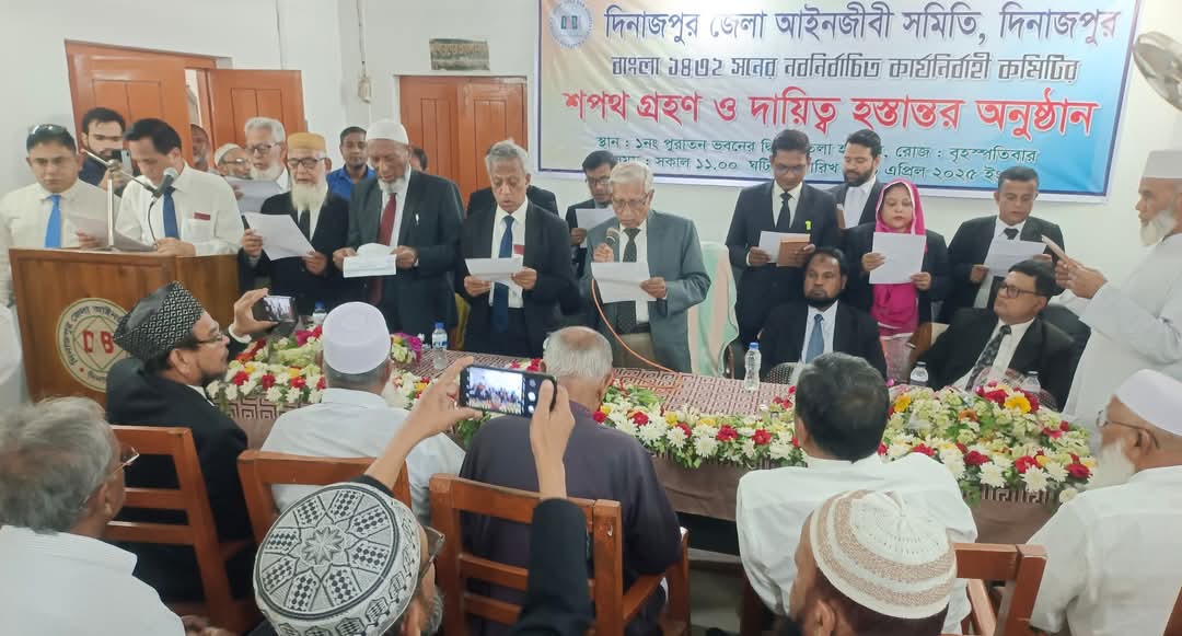 দিনাজপুর জেলা আইনজীবী সমিতির বাংলা ১৪৩২ সনের নবনির্বাচিত কার্যনির্বাহী কমিটির শপথগ্রহণ ও দায়িত্ব হস্তান্তর অনুষ্ঠান সম্পন্ন হয়েছে। বৃহস্পতিবার (৩ এপ্রিল ২০২৫) সকাল ১১টায় জেলা আইনজীবী...