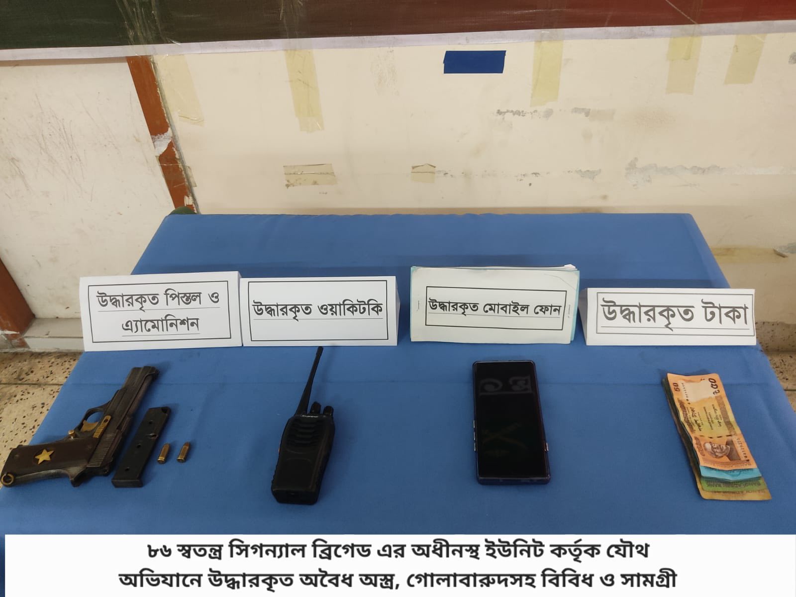 রাত আনুমানিক ২ টায় কুষ্টিয়া জেলার ভেড়ামারা উপজেলার ধর্মপুর ইউনিয়নের রামচন্দ্রপুর গ্রামে সেনাবাহিনীর নেতৃত্বে একটি যৌথ অভিযানে ১টি বিদেশী পিস্তল (Colt M1911, Made in USA),...