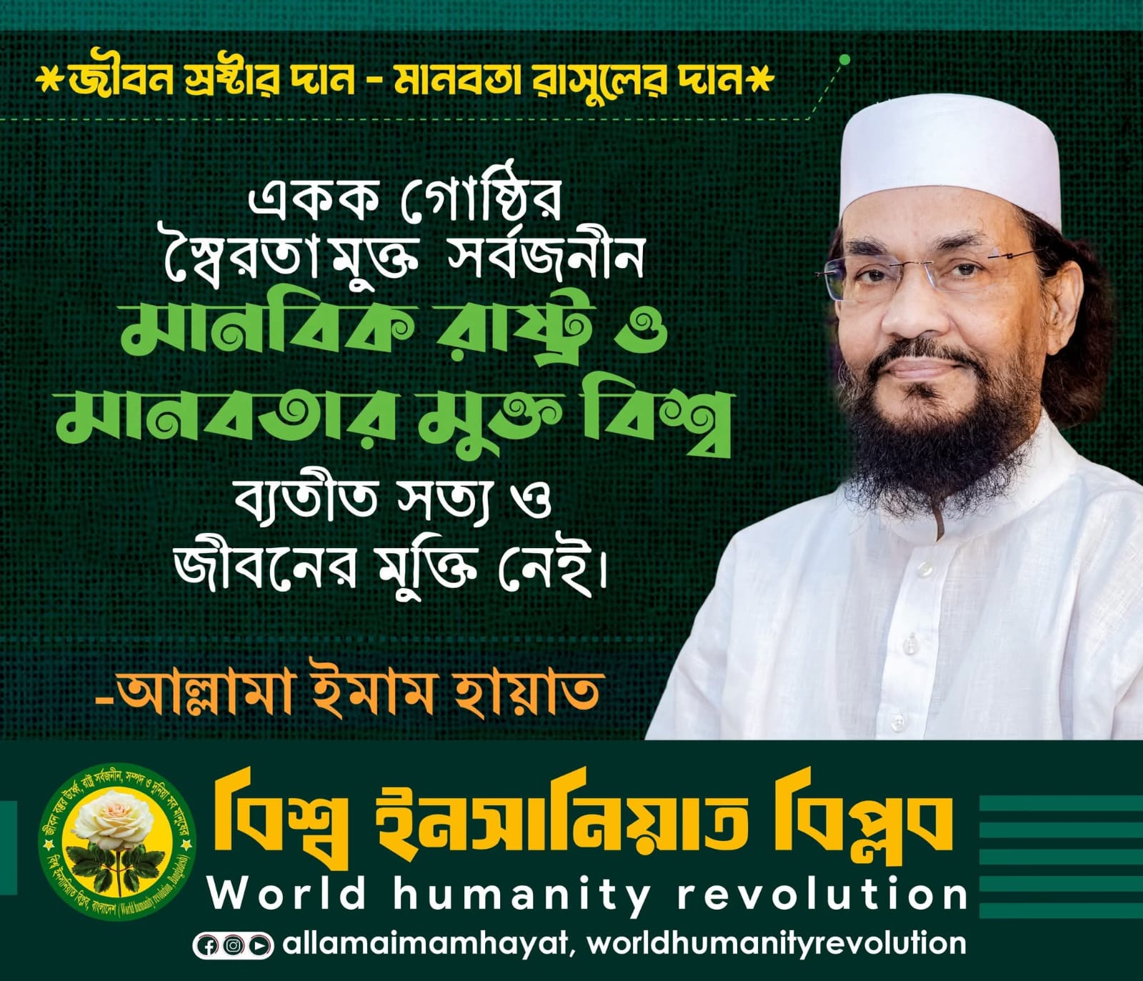 মানবতার রাজনীতি ছাড়া মুক্তি নেই: আল্লামা ইমাম হায়াত
