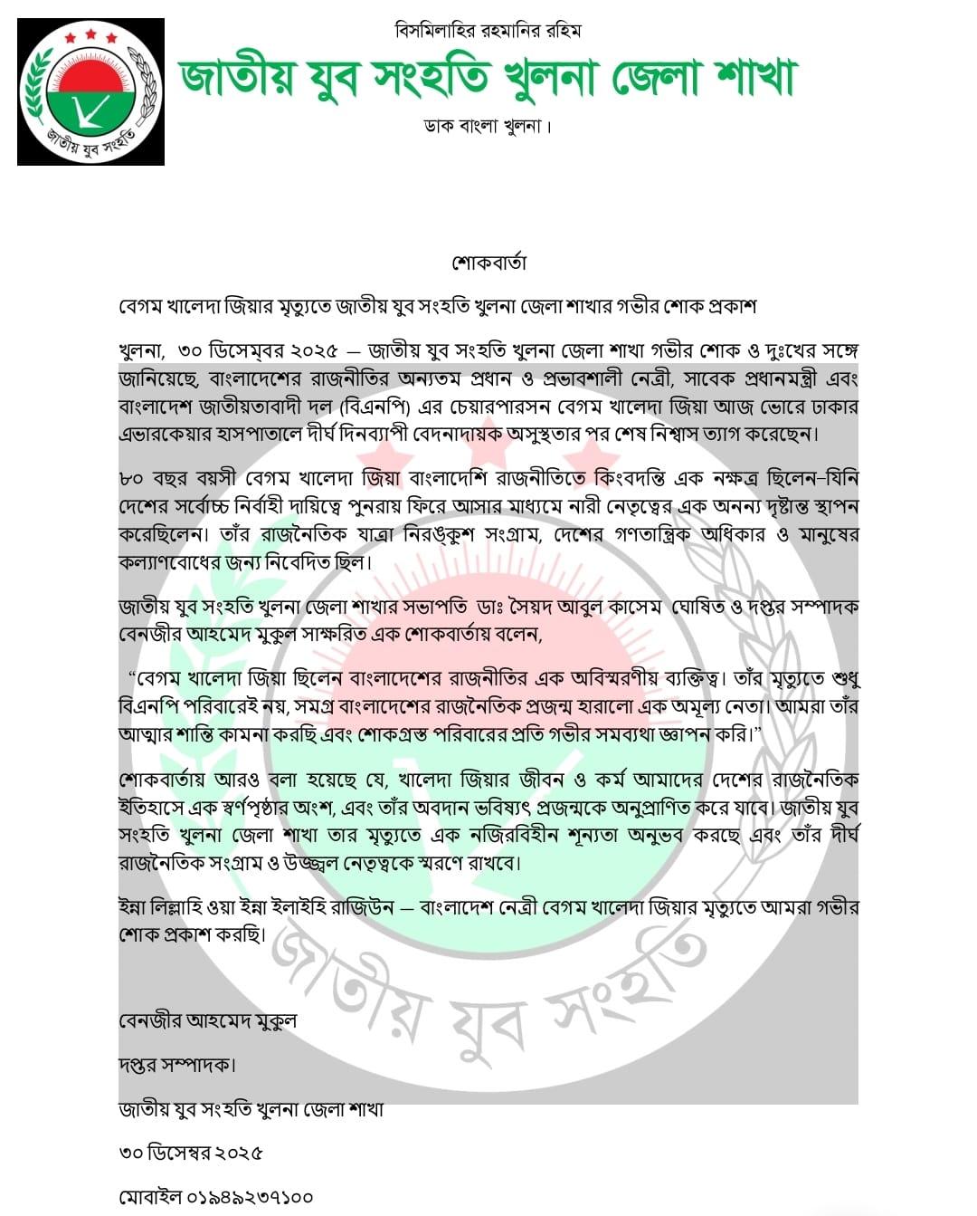 শিক্ষাগত যোগ্যতা: কমপক্ষে এইচএসসি পাশ / দৈনিক উজ্জ্বল বাংলাদেশ পত্রিকায় সংবাদদাতা আবশ্যক