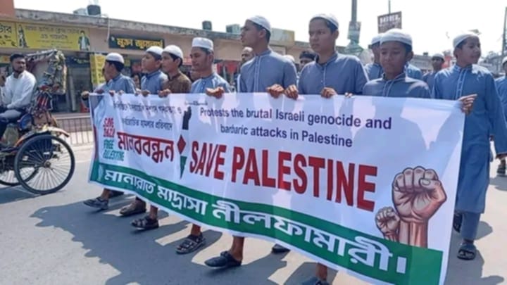 ফিলিস্তিনে হা’মলার প্রতিবাদে নীলফামারীতে মানববন্ধন