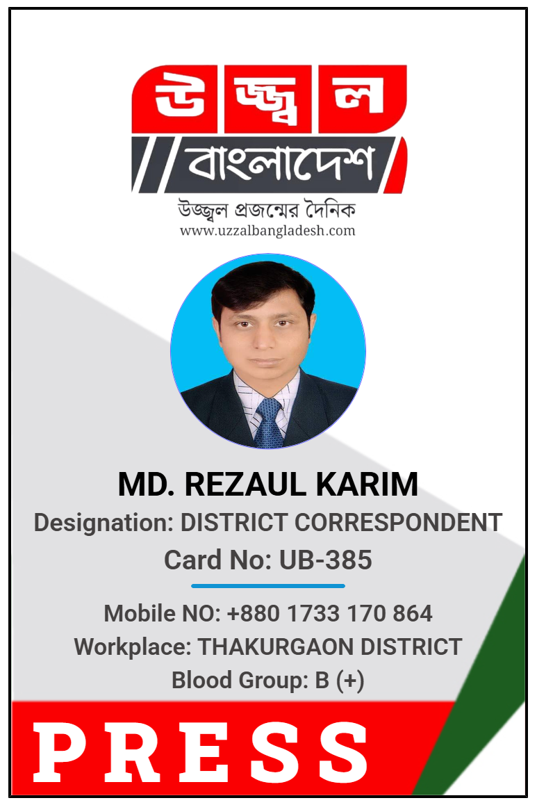 কাডের মেয়াদ: ৩১/১২/২০২৬ ইং / দৈনিক উজ্জ্বল বাংলাদেশ-পরিবারের নতুন সদস্যকে আন্তরিক অভিনন্দন