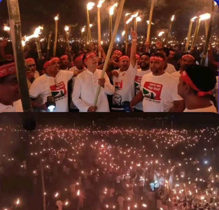 অবিলম্বে দেশীয় অর্থে তিস্তা মেগা প্রকল্প বাস্তবায়নের দাবিতে কুড়িগ্রামের রাজারহাট উপজেলার ঘড়িয়ালডাঙ্গা ইউনিয়ন বুড়ির হাট,তিস্তা নদীর তীরে মশাল প্রজ্বলন করেছে তিস্তা নদী রক্ষা আন্দোলন।