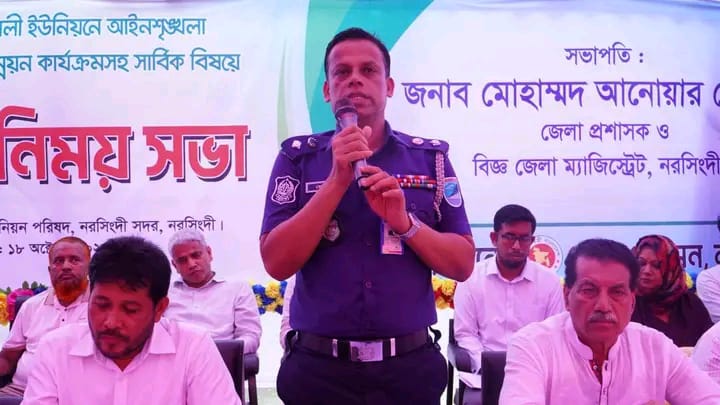 আজ শনিবার (১৮ অক্টোবর) নরসিংদী সদর উপজেলার আলোকবালি ইউনিয়ন পরিষদ প্রাঙ্গণে আলোকবালী ইউনিয়নে আইন শৃঙ্খলা ও উন্নয়ন কার্যক্রমসহ সার্বিক বিষয়ে মতবিনিময় সভা অনুষ্ঠিত হয়েছে। উক্ত মতবিনিময় সভায় নরসিংদীর জেলা প্রশাসক, পুলিশ সুপার, র্যাব-১১ নরসিংদীর প্রতিনিধি,আনসার ও ভিডিপি কর্মকর্তা,উপজেলা নির্বাহী কর্মকর্তা, অফিসার ইনচার্জ, বিভিন্ন রাজনৈতিক সংগঠনের নেতৃবৃন্দ, বৈষম্য বিরোধী ছাত্র আন্দোলনের প্রতিনিধি, জুলাই যোদ্ধা, স্থানীয় গণ্যমান্য ব্যক্তি ও সাংবাদিকবৃন্দসহ সংশ্লিষ্ট অংশীজনরা উপস্থিত ছিলেন।